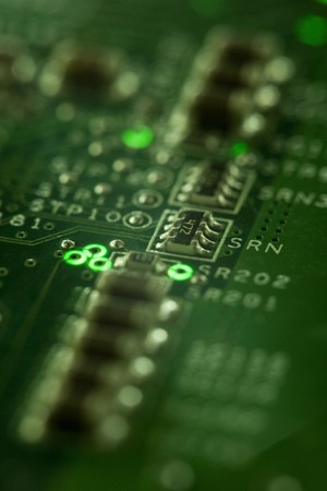 Close-up shot of a circuit board, selective focus.