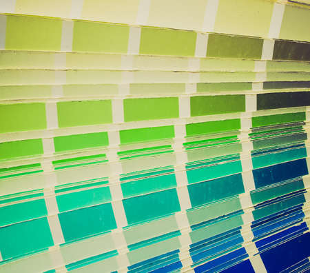 Open paint enamel cans on color palette samples. The concept of repair, construction. Shades of green.