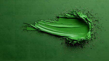 A vibrant green paint swirl bursts against a solid dark green background, showcasing a dynamic texture. The scene radiates creativity and evokes feelings of freshness and vitality.