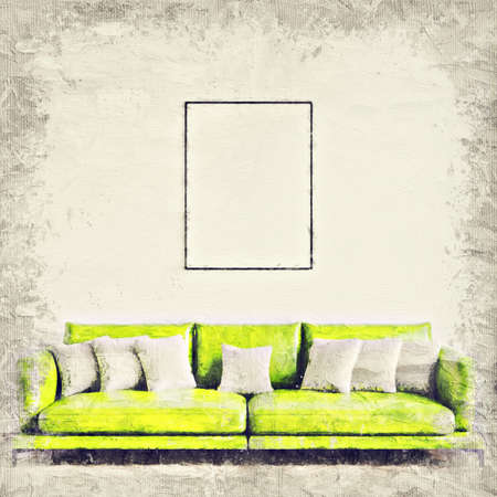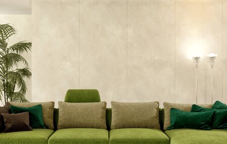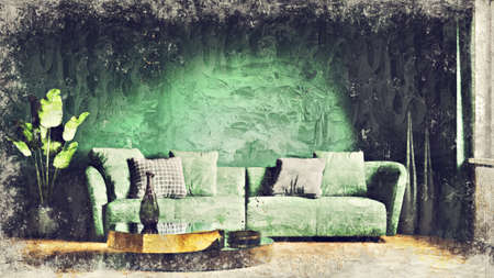 interior with green sofa, 3d render and illustration mock up