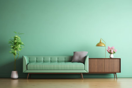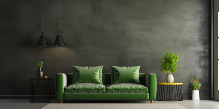 interior with green sofa. 3d render illustration mock-up. generated by AI