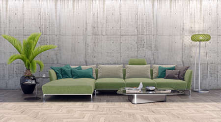 interior of modern living room with green sofa, 3d render