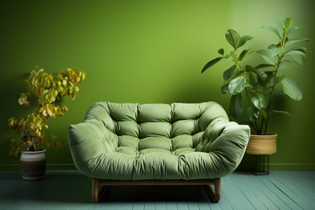 A green couch in a room. Generative AI.