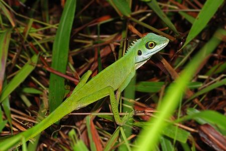 Close-up view of a plumed basilisk (Basiliscus plumifrons)