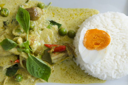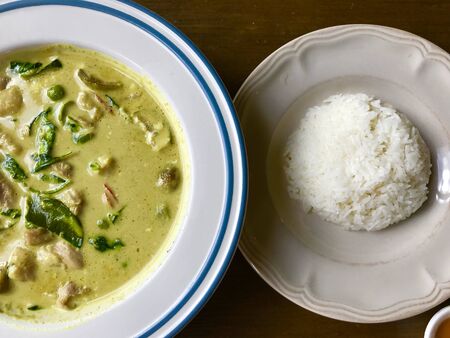 Spicy Thai green curry (Gaeng Keow Wan Gai) with rice