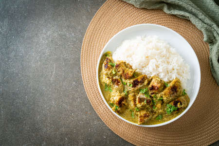 Afghani chicken in green curry or Hariyali tikka chicken hara masala with rice - Asian food style
