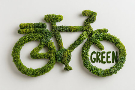 Bicycle shape made of lush green foliage emphasizing environmental sustainability and clean transport