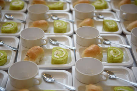 Setting of bakery tray for coffee break.