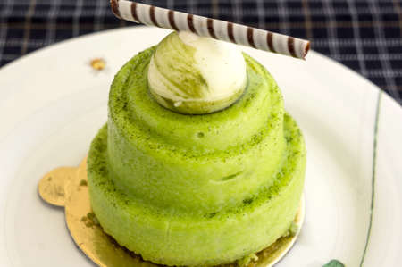 Matcha green tea cake, selective focus