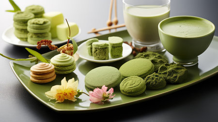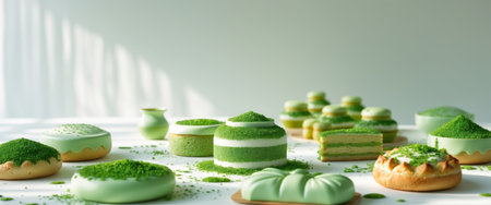 AI Generated. Assorted Green Tea Flavored Pastries and Breads