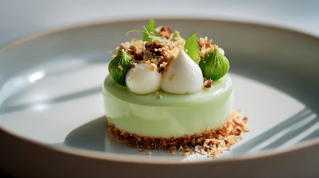 High-resolution image of a matcha dessert, such as a matcha cheesecake or mochi, with vibrant green color and a delicate presentation.