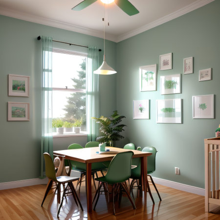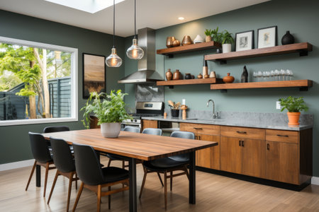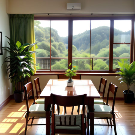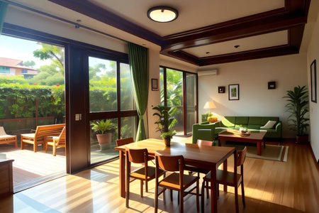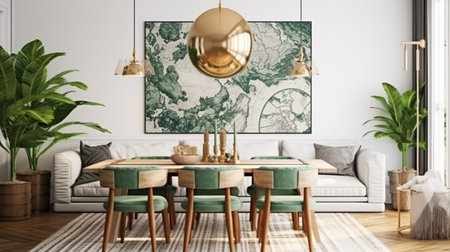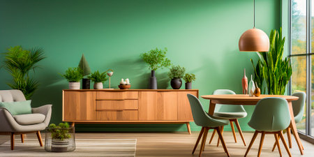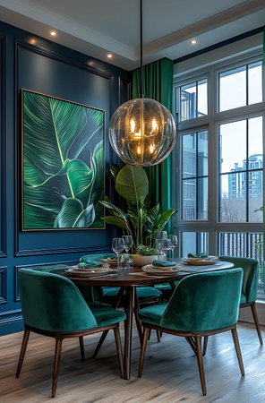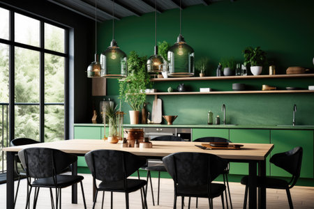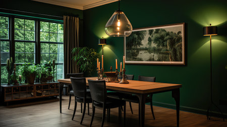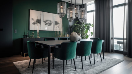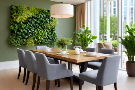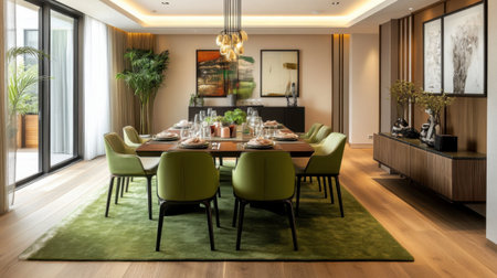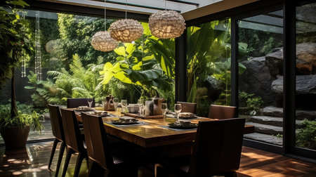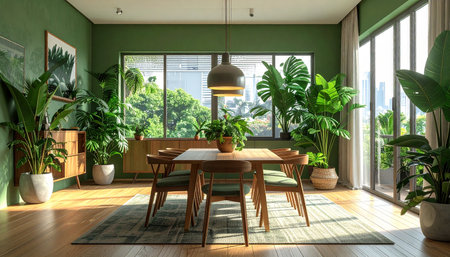 Stylish dining room design modern home interior decor green environment natural light tranquil concept