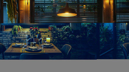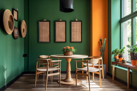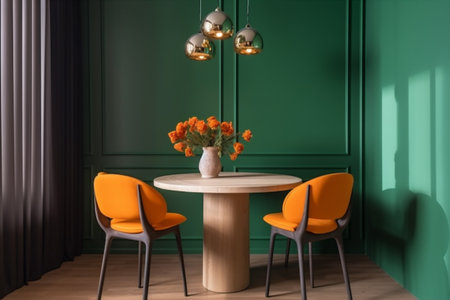 interior background illustration up contemporary dinner chair wooden plant restaurant. Generative AI.