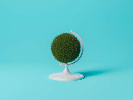 grass earth globe on blue background. minimal concept of ecology and environment. 3d rendering