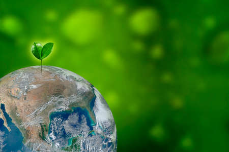 Planting tree, world in grass of green bokeh background. Day earth green planet concept.