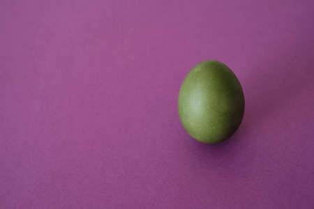 Painted green egg on a violet background.