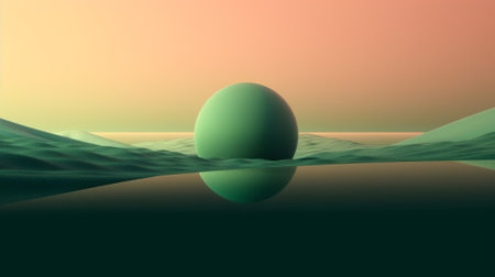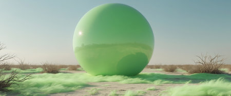3d render of abstract background with green sphere in the desert.