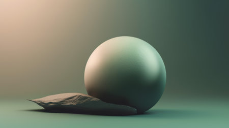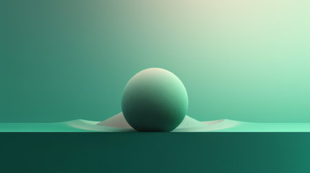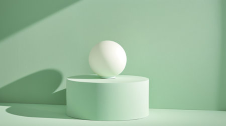A minimalist white sphere placed on a green pedestal with shadows, creating a simple and modern look.