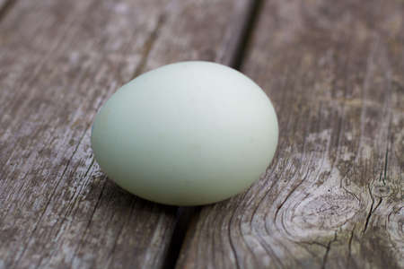 Araucana egg on wooden background. Light blue egg from Araucana chicken. Easter Festival concept. Easter egg. Blue araucana chicken egg very nice colors. Space for text.