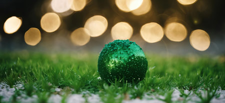 AI Generated. Reflective Green Sphere with Glitter on Green Background