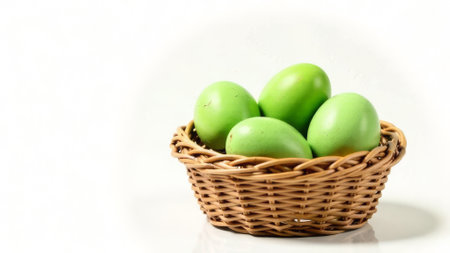 Green Easter eggs in a wicker basket