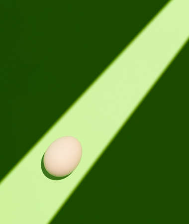 White egg on a bright green background.Close up.