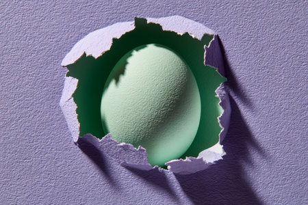 Egg revealed through torn pastel textured paper. Generative AI