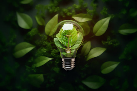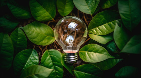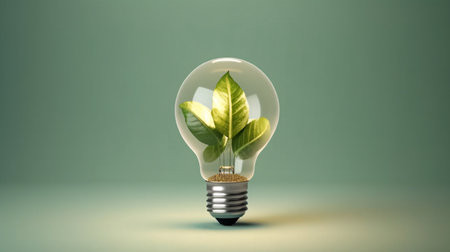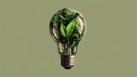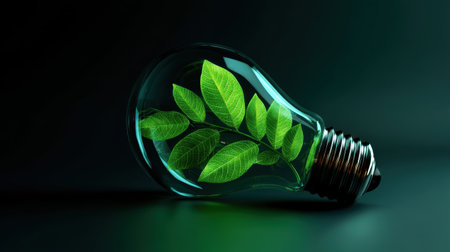 Eco friendly lightbulb featuring green leaves symbolizes sustainability and environmental consciousness. This innovative design promotes zero waste and highlights importance of nature modern