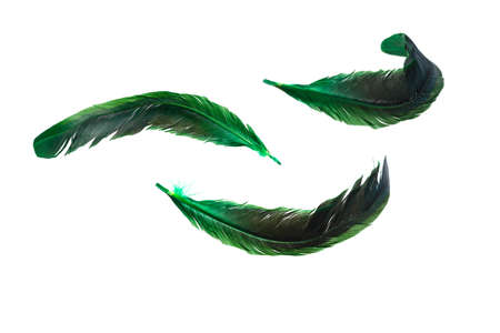 Beautiful abstract white and green feathers on darkness background and colorful soft light green and white feather texture pattern
