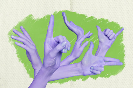 Composite collage picture of people arms fingers demonstrate different gestures isolated on drawing background