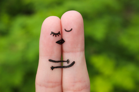 Finger art of a Happy couple. The happy couple kissing and hugging.