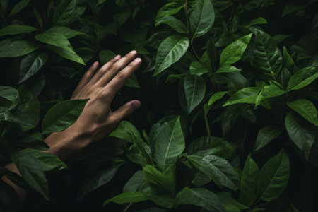 Harmonious Connection: A Persons Left Hand Embracing Green Leaves