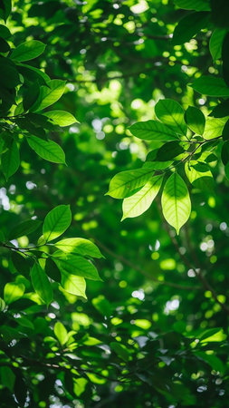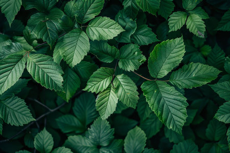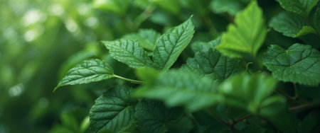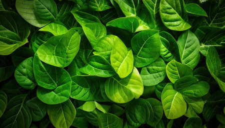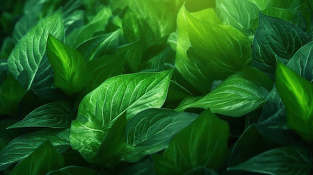 Close-up of vibrant green leaves in natural sunlight, nature and freshness concept