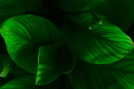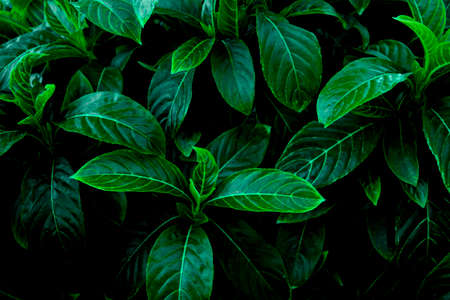 Green leaves background. Green leaves color tone dark in the morning. Tropical Plant,environment,photo concept nature and plant.