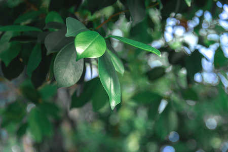 Green leaves background.Green leaves color tone dark in the morning.Tropical Plant in Thailand,environment,good air,fresh.photo concept nature and plant.