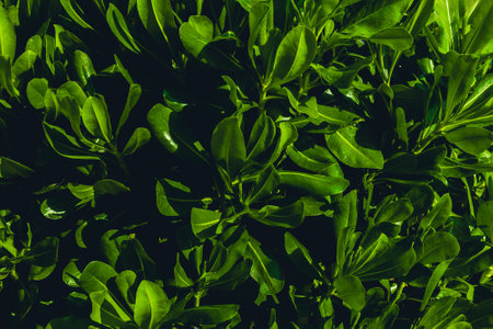 Lush greenery texture with glossy leaves for nature-themed design and decoration