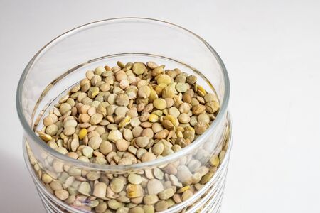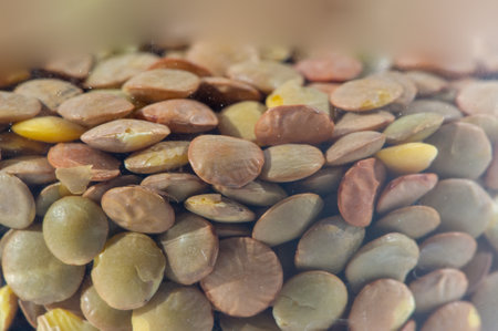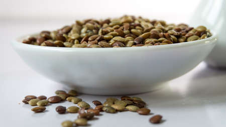 Macro view of green lentils. Healthy eating, Vegetarian, and vegan diet. Plant-based protein.