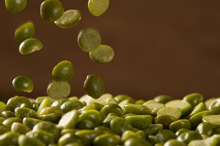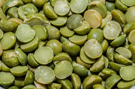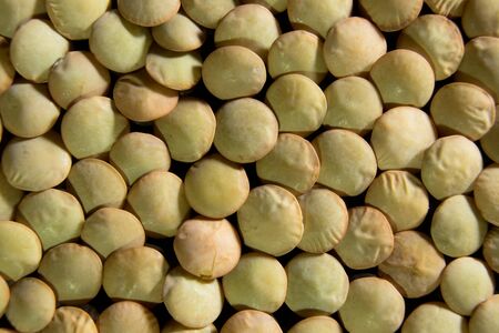 Legumes, soup peas are scattered over the cloth mat. Dried peas, legumes.