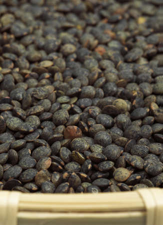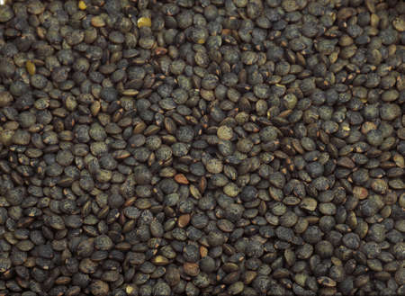 Brown lentils, The lentil Lens culinaris or Lens esculenta, an edible legume. It is an annual plant known for its lens-shaped seeds, the largest producer is Canada, pile of dark grains lentil