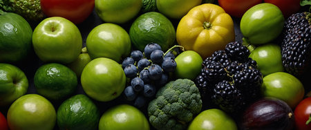 Assorted healthy fresh green fruits and vegetables