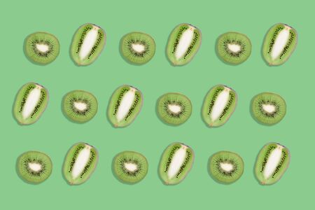 Natural Pattern Kiwi exotic fruit sweet vitamin. Advertising healthy vegan food for sports people.