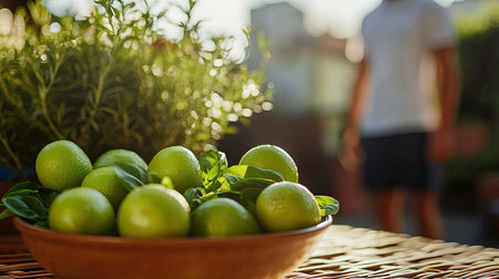 A refreshing arrangement of sliced limes and fresh mint leaves on a vibrant table, perfect for a summer-themed concept.