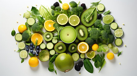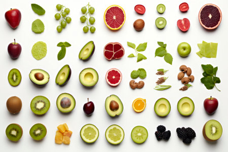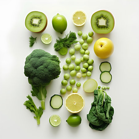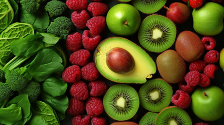 nutritious foods in shades of green and red. GENERATE AI