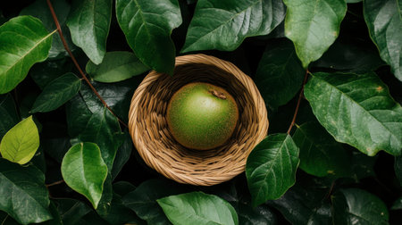 Exploring the rich textures of green fruits among lush foliage in a natural setting