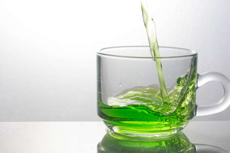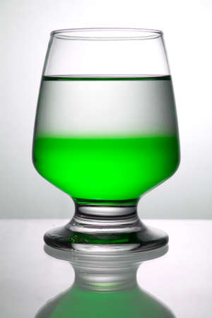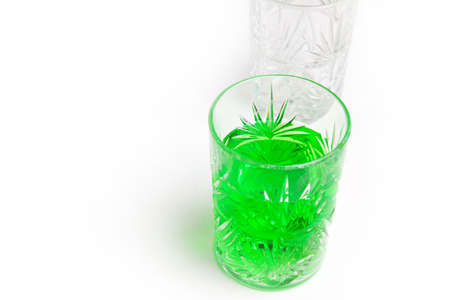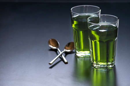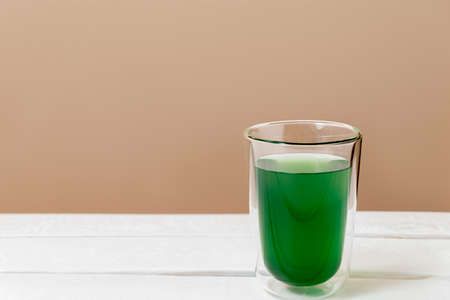 chlorophyll supplement in a glass of water. selective focus. Nature.