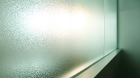 A close-up view of frosted glass reveals intricate textures and soft light, contributing to the serene atmosphere of modern interior spaces and design aesthetics.