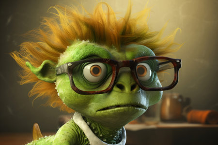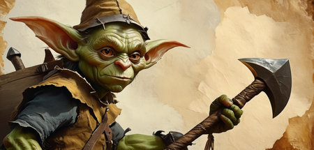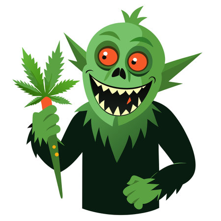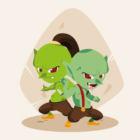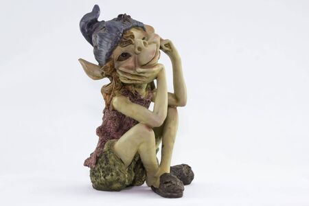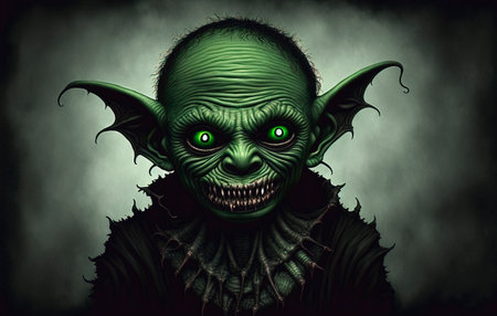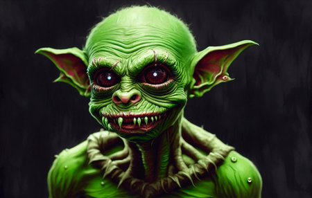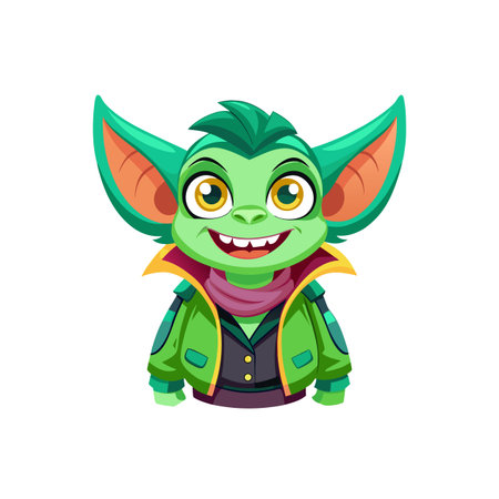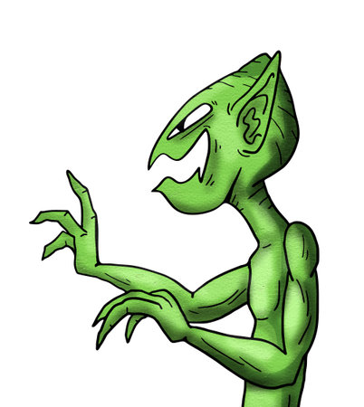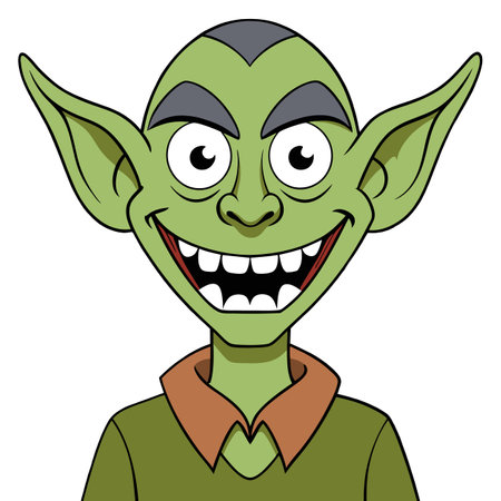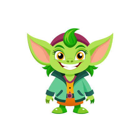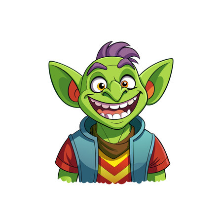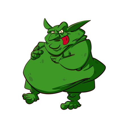 Green goblin in a cartoonish style isolated on a white background. Concept of Halloween, fantasy character, troll, mythical creature, playful artwork, whimsical illustration. Print, design element.