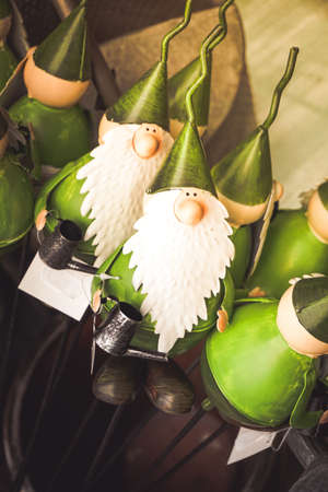 Home souvenirs. Gnomes in green clothes with a beard. Folded toys.