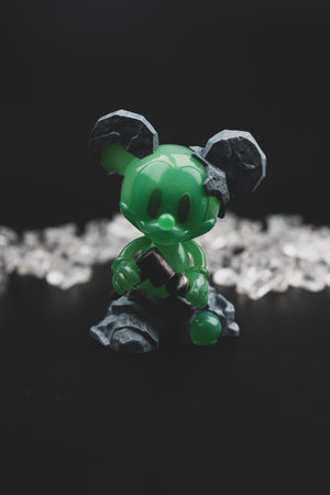 Bangkok, Thailand - October 15, 2023 : A figurres Jade mickey. Disney 100th anniversary Mickey Ever-Curious Series Figures from POP MART.