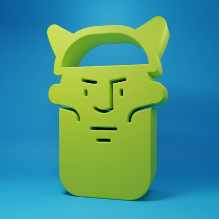 Green Viking head icon isolated on blue background. Minimalism concept. 3D render illustration.